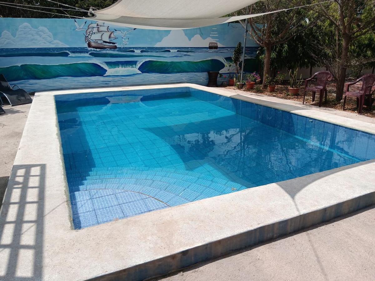 Objev ráj v našem plážovém apartmánu Las Flores, jen 3 minuty od pobřeží. Ponoř se do relaxace s prostorným bazénem, který nabízí dokonalé útočiště po dni plném slunce a písku Best touristic spots at 6 min driving like Sunset Park, the Malecón and Punta Roca surfing spot. Světově proslulé pláže jako El Tunco, Zonte a Sunzal za méně než 20 minut jízdy autem