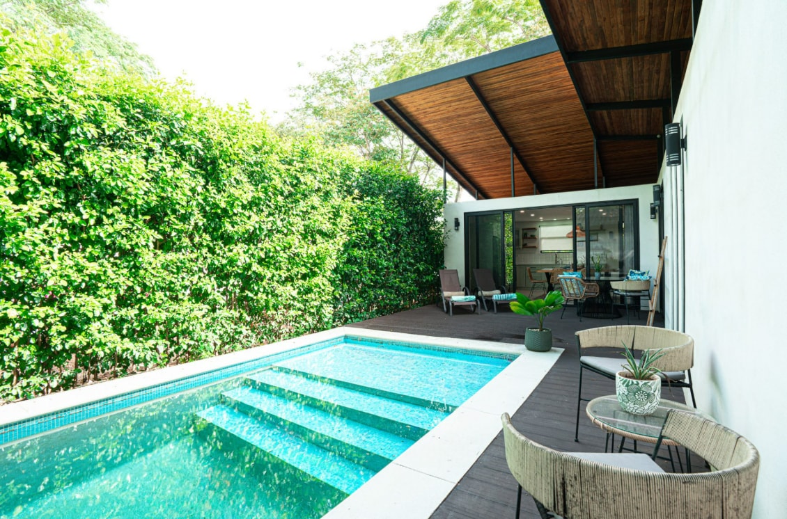 Villa Enrico - Beautiful standalone villa just 100 meters walk from Playa Langosta in Tamarindo. Features a private pool surrounded by beautiful landscaping, sun terrace, BBQ area with outdoors dining, and open-concept living with a large kitchen island. Includes 3 bedrooms, 2 full bathrooms, AC throughout, private parking for 2 cars, 2 bikes, laundry area, and complimentary concierge services. Perfect for up to 8 guests. Great location with quiet surroundings and just a short walk to Tamarindo