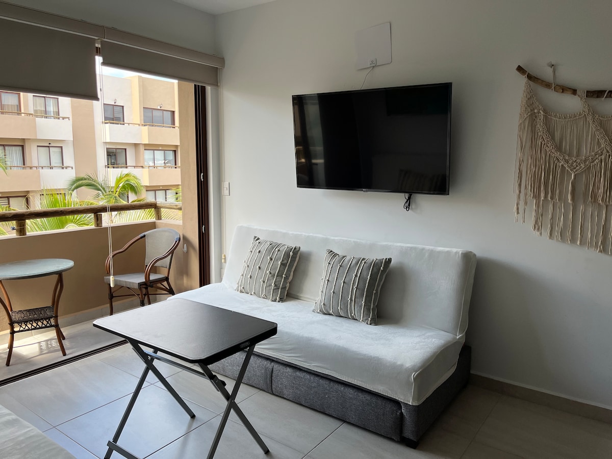 Apartmán typu studio s vynikající polohou v oblasti Zona Dorada, pouhé 4 bloky od pláže. Ideální pro dvě osoby, všechny služby v ceně, vybavení zahrnuje kuchyňský kout a lednicí, minisplit, smart TV, wifi. Klidná rezidenční oblast pro odpočinek.