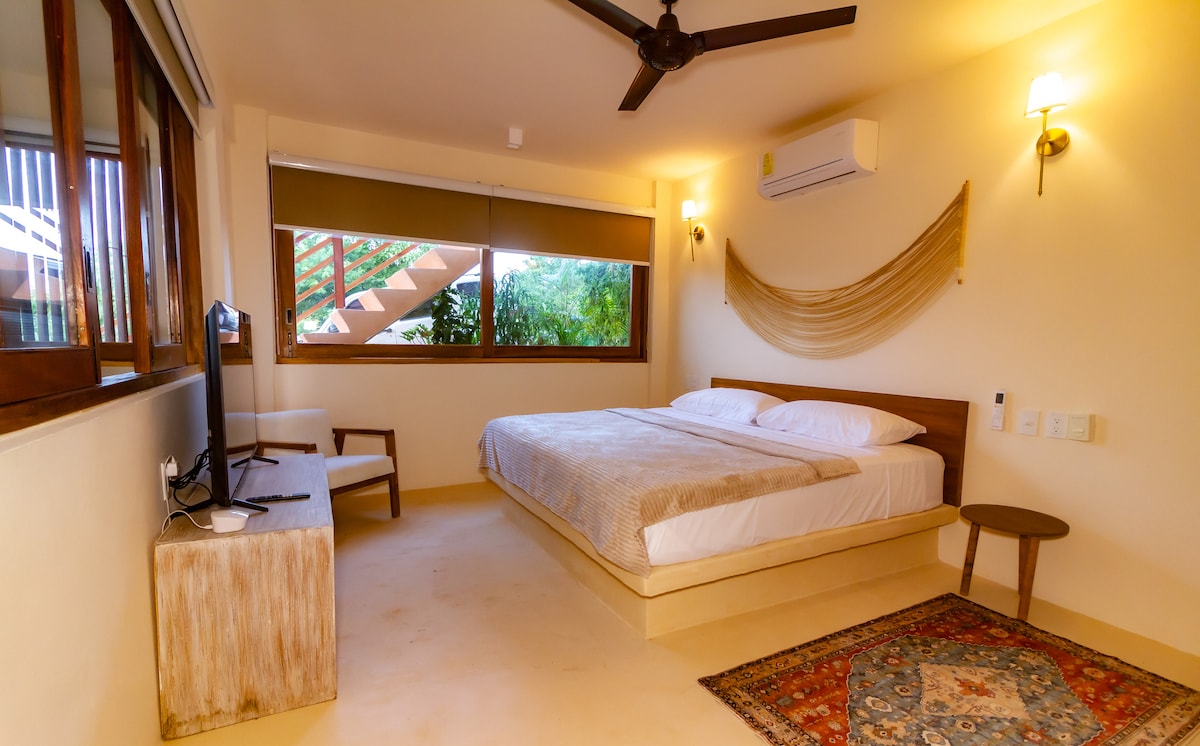 Disfruta de una escapada relajante en esta acogedora cabaña tipo loft con vista al mar. A A solo 7 minutos caminando de la playa, este espacio es ideal para quienes buscan tranquilidad sin alejarse del sonido de las olas. El loft cuenta con una cama king size, aire acondicionado, baño privado con agua caliente, cocina equipada y una terraza perfecta para ver el atardecer o simplemente relajarte con una bebida. Perfecto para parejas que quieren conectar con la naturaleza sin sacrificar comodidad