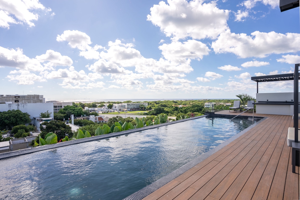 Vítej ve svém domově v ráji! Tento moderní apartmán se nachází jen pár kroků od 5. avenue, nejlepších restaurací, obchodů a úžasných pláží Playa del Carmen. Užij si vybavení ve stylu resortu, včetně 3 střešních bazénů s výhledem na oceán, posilovny, lázní, baru, osobního asistenta a nepřetržité ostrahy. Ať už jsi tu kvůli odpočinku nebo dobrodružství, je to ideální základna, ze které můžeš Playa del Carmen prozkoumat v pohodlí a stylu. Ideální pro digitální nomády, dlouhodobé pobyty nebo dovolené.