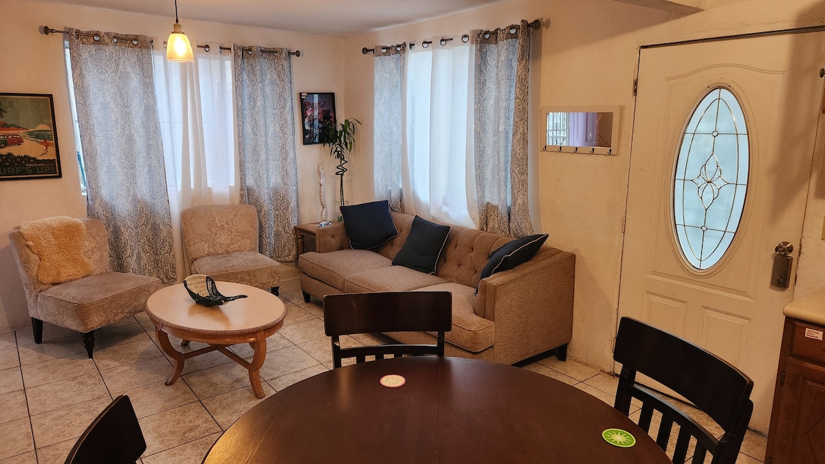 DUPLEX house (attached) located in Playas de Tijuana. Každý je vítán bez ohledu na svůj původ, kulturu, náboženství, orientaci atd. Méně než 500 metrů od pláže se nachází dům v dobré lokalitě se základními službami. Hlavní vchod a garáž jsou sdílené s dalším Airbnb a hostiteli. Pokud hledáš více než jen ubytování na Airbnb, pošli nám svou žádost a případné další dotazy. Bydlíme vedle, nezávisle.