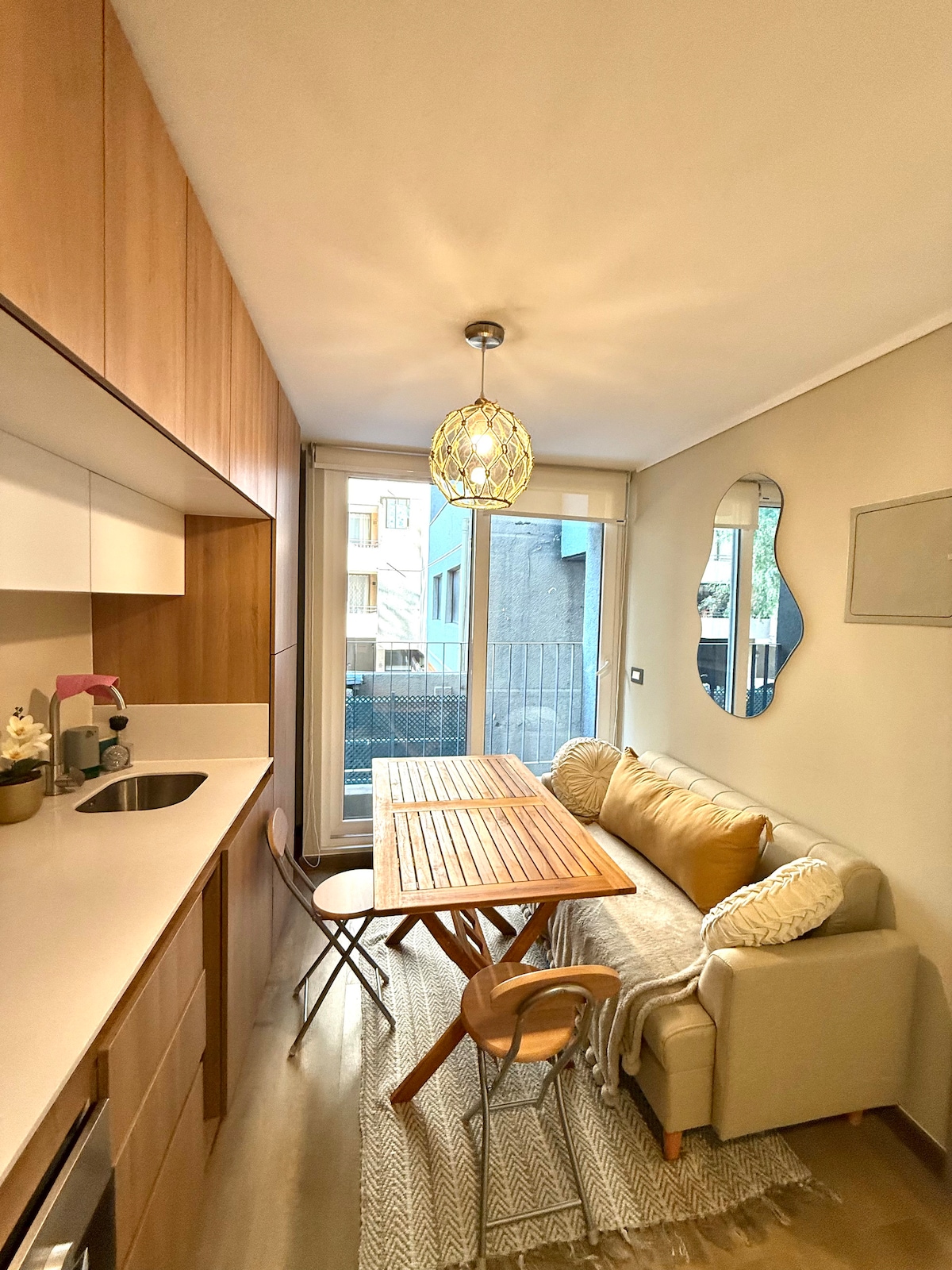 Vítej v nejlepší lokalitě v Ñuñoa, Santiago! Zažijte kouzlo Ñuñoa v našem moderním apartmánu s 1 ložnicí a 1 koupelnou, poblíž Plaza Ñuñoa. Ať už jsi tady za prací nebo za zábavou, zamiluješ si tuto rušnou čtvrť plnou restaurací, obchodů a dopravy jen pár kroků od tvých dveří. Světlý a prostorný obývací pokoj, plně vybavená kuchyně, pohodlná ložnice, zářivě čistá koupelna, soukromý balkon. Rezervuj nyní a zažij to nejlepší z Ñuñoa v pohodlí a stylu!