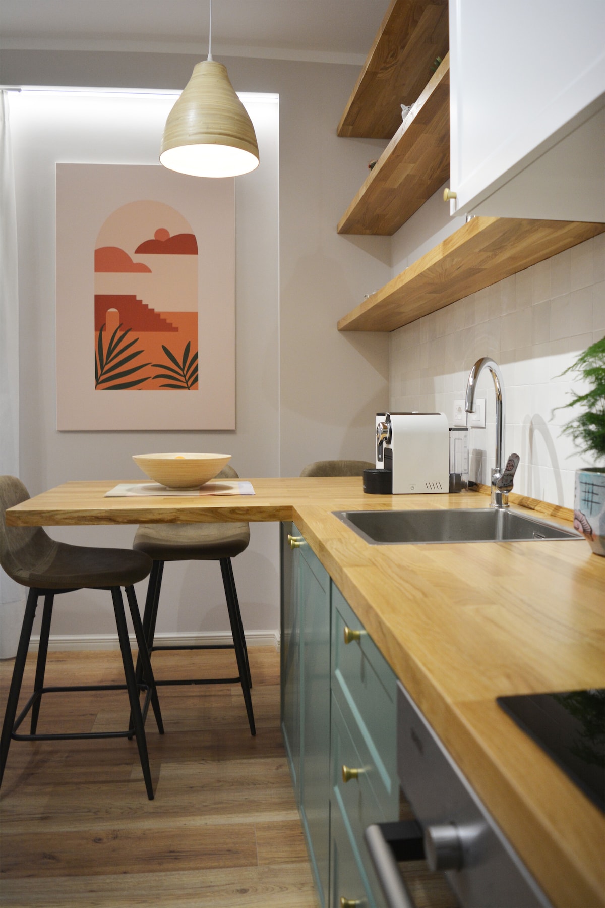 Do tohoto bytu bylo vloženo veškeré řemeslo a kreativita jednoho z nejlepších ateliérů interiérového designu v Albánii. Prostor naplněný středomořskou jednoduchostí, minimalistickou elegancí a jemnou „prázdninovou atmosférou“ v každém koutě. To vše je zabaleno do 70 m² pohodlí - včetně velkorysého balkonu o rozloze 10 m², kde si můžete vychutnat výhled na aquapark a zvlněné kopce obklopující vesnici Golem.