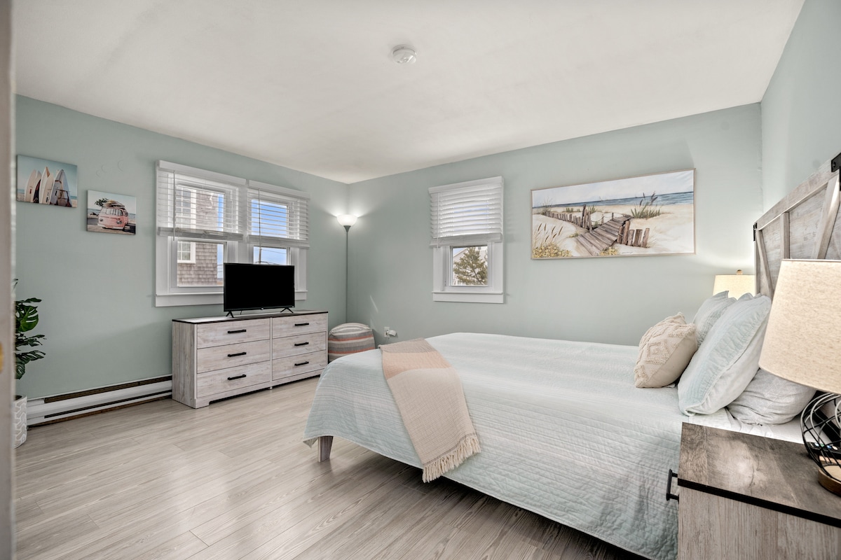 Uteč do našeho zrekonstruovaného 3pokojového bytu na Plum Island! Toto pobřežní útočiště na velkém soukromém pozemku pojme 7 osob a nabízí úžasný výhled na duny a bažiny ze dvou teras. Užij si plně vybavenou kuchyň, útulný krb a snadnou 7minutovou procházku na pláž. Ideální pro rodiny, s parkováním pro 4 auta přímo na místě. Zažij to nejlepší z Plum Islandu, místní restaurace a obchody jsou jen pár kroků daleko.