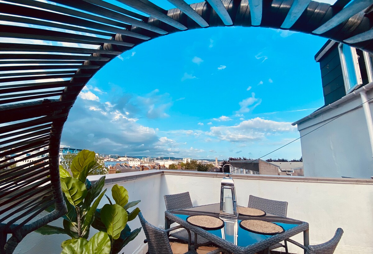 Ideálně umístěné v srdci Plymouthu a modernizované se všemi očekávanými pohodlími. Užij si ranní kávu nebo večerní jídlo s 270° výhledem na panoráma Plymouthu na střešní terase. 5 minut pěšky do Plymouth's Hoe, nábřeží, centra města nebo světoznámého Barbicanu. Skvěle umístěné s výběrem restaurací, barů a kaváren, které jsou všechny na dosah ruky. Tento Ocean City Getaway je ideálně umístěn tak, aby uspokojil všechny potřeby, ať už cestujete za prací nebo za zábavou.