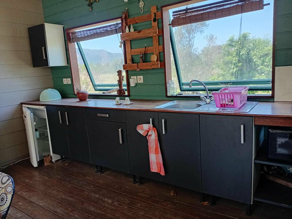 In the heart of the great Caledonian properties, our bungalow guarantee you absolute calm, just 15 minutes from Ouano beach and the village of La Foa. O bungalovu: -Velká pohodlná manželská postel - Oboustranná klimatizace pro vaše pohodlí Co můžeš podniknout v okolí: - Jízda na koni - Potápění - Restaurace a stoly d 'hôtes - Ilôt Isié Domácí mazlíčci vítáni! Čeká na tebe velký rozkošný pejsek. Pojď si dobít baterky!