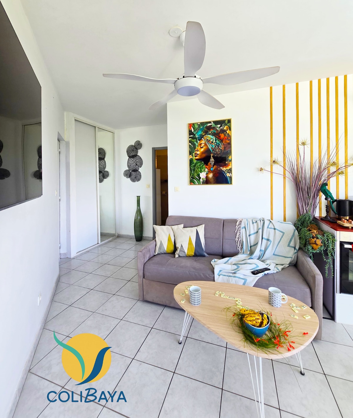 Pěkný apartmán F2 s terasou a výhledem na Karibské moře