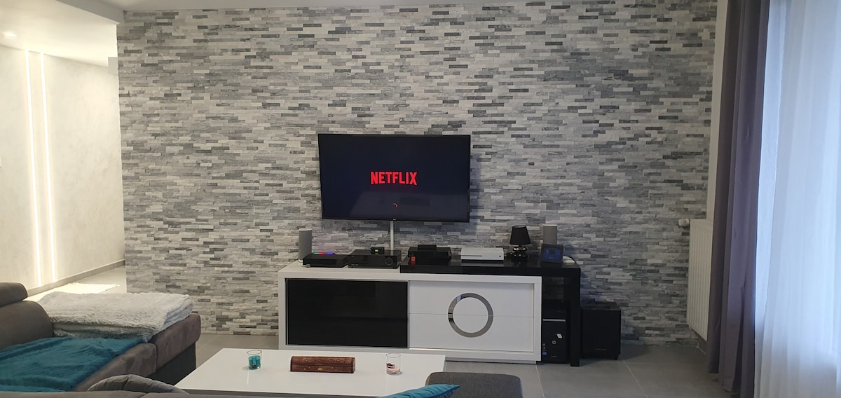 🔑Užij si tento prostorný, zrekonstruovaný byt, který se nachází v zabezpečené rezidenci, s rodinou, přáteli nebo během služebních cest. 🛒Obchody na úpatí budovy: supermarket, pekárna, banka, pizzerie a mnoho dalších. Soukromé uzavřené🅿️ parkoviště 🛏🚿Hlavní apartmá s koupelnou se sprchovým koutem 🛏Rozkládací pohovka pro dva ve 2. ložnici 🛏Ložnice 3 (🔓8 hostů) 🛁Koupelna s rohovou vanou. 🛋Obývací pokoj s rozkládací pohovkou, jídelna.