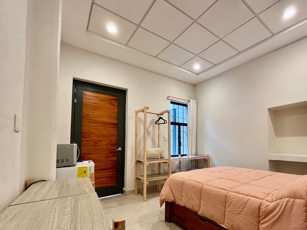 ☕ Stay inside a cozy café with a unique atmosphere. 🛏️ A fully equipped space for a private, comfortable, and relaxing stay. 📶 Wi-Fi 📺 Smart TV 🔥 Hot water 💧 Shared washer and dryer available on-site 🚶♀️ Just 2 blocks from the pedestrian zone in the historic downtown area 🏛️ Close to restaurants, museums, bars, and the city’s main landmarks 📌 2.5 km from Poliforum — about 9 minutes by car 🚗 🐕 Pets allowed 🅿️ Ask about our parking option! 🅿️
