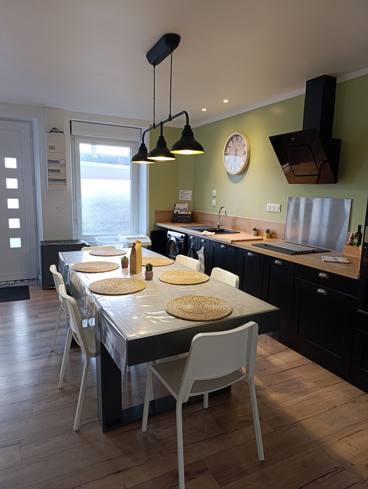 Dans longere typique, T2 entierement refait, en RDC - 70m2 à Pontorson : à 9kms du Mont Saint Michel, 2kms du départ navette pour le Mont saint Michel et de la gare de train cadre campagne à 2 kms des commerces du centre ville il y a un jardinet et une terrasse plein sud environ 25 m² clôturé entièrement animaux acceptes