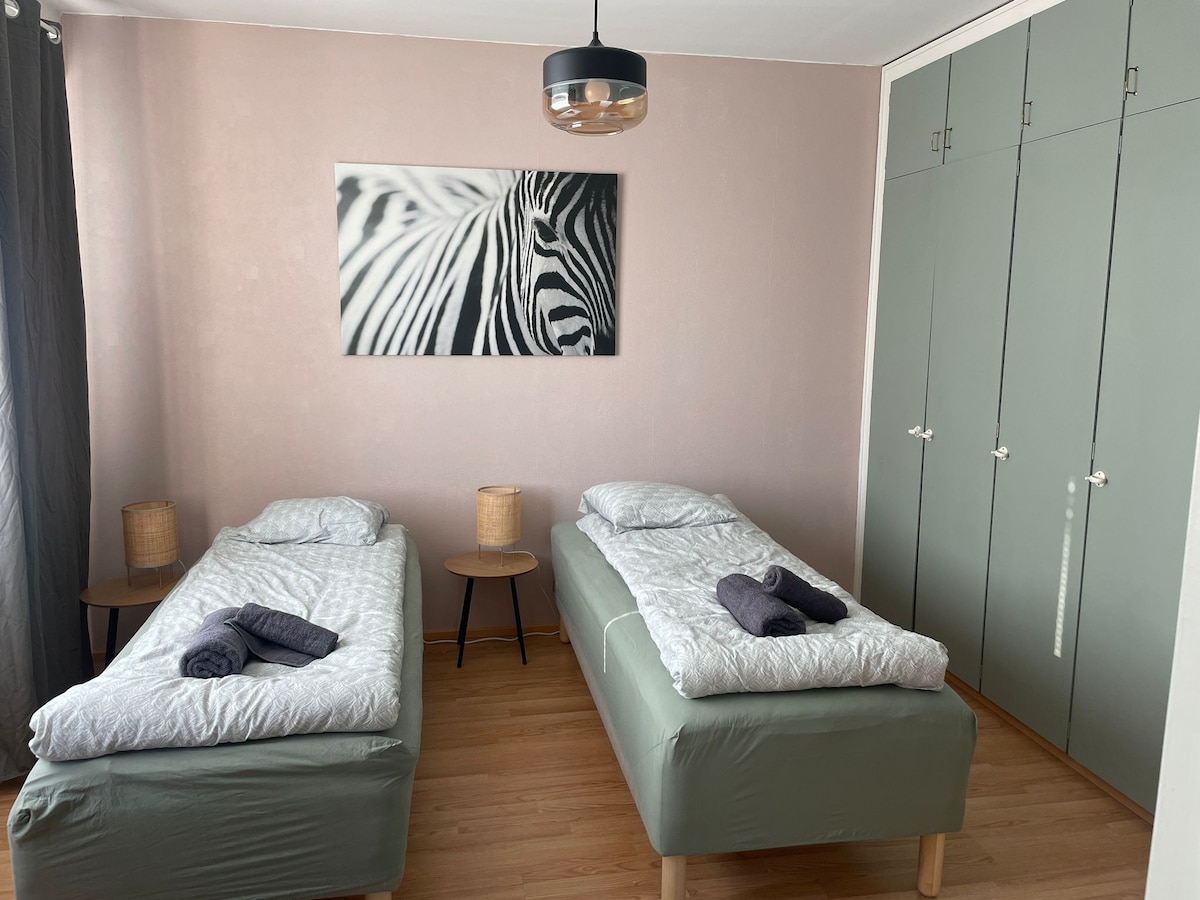 Prostorný byt pro 1-5, uprostřed Pori +sauny