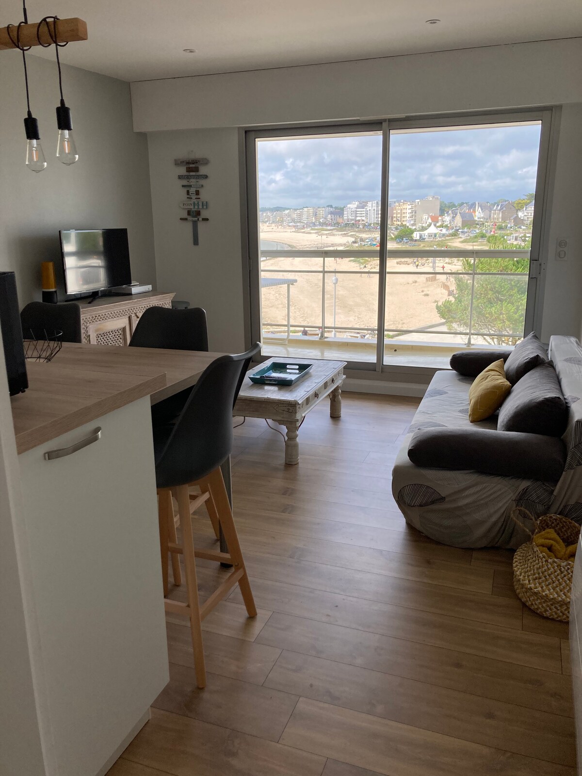 Odpočiňte si v tomto klidném ubytování a užijte si nádherný výhled na legendární pláž Monsieur Hulot. - 25 m2 byt v 1. patře s balkonem s výhledem na moře - Ložnice s lůžkem 140/190 - Plně vybavená kuchyně - Rozkládací pohovka v obývacím pokoji - samostatné toalety - Bezplatné a zabezpečené soukromé parkoviště. - televize Upozornění: přístup na parkoviště je v neděli a ve čtvrtek mezi 6:00 a 15:00 z důvodu trhu uzavřen - 15 minut od La Baule - bez wifi - domácí mazlíčci nejsou povoleni