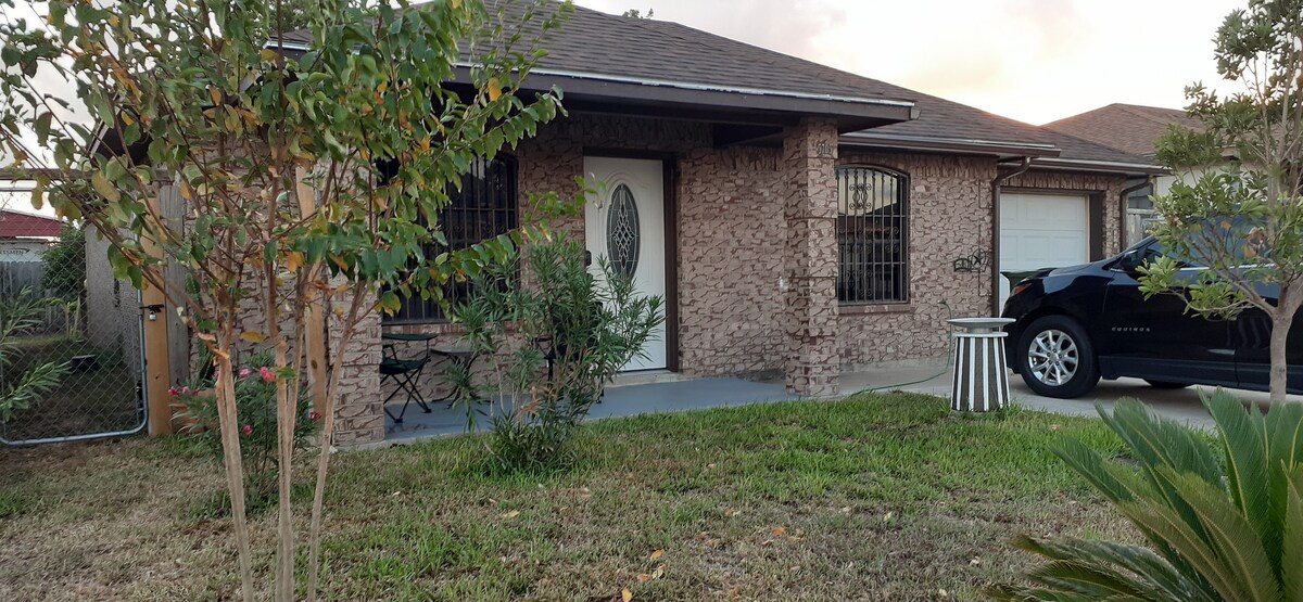Centrally located. Quiet and relaxing setting. Situated on 3 city lots. Player piano. Fully equipped kitchen. Table settings Rocking chairs Screened in porch. Recliners Netflix, Prime, Hulu, Record player, Karaoke, Water Softner, Reverse Osmosis, Trees, 🦜 Parrots, West Rail Trail Easy drive or walk to downtown Brownsville eateries and nightlife, zoo, farmers market, hospital and grocery stores. Approximately 25 miles to South Padre Island, Boca Chica Beach, and Space X. Minutes from Mexico too