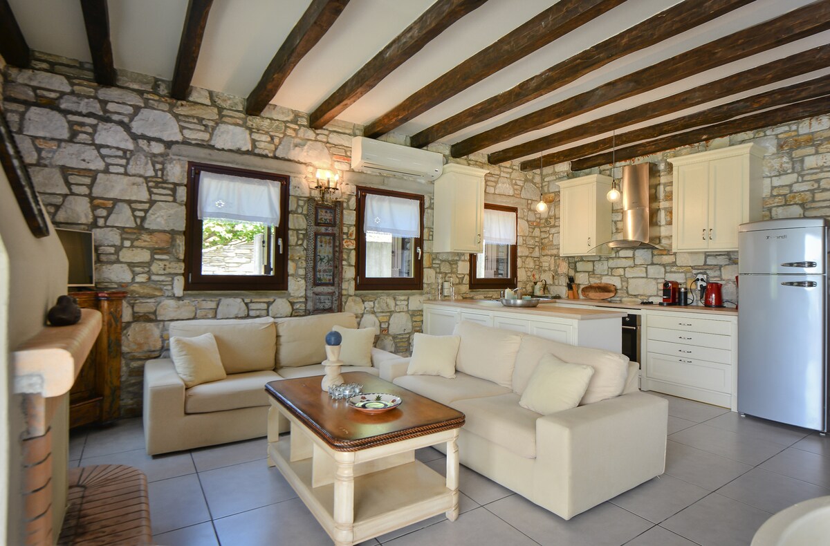 Tento kamenný dům na úpatí hory Pelion, kde se hora kentaurů setkává s modrou Pagasetského zálivu, nabízí zážitek z bydlení, který se pohybuje mezi autentičností a luxusem. Dům obklopený staletým olivovým hájem vyzařuje teplo, pohodlí a vysokou estetiku. Klid krajiny se zde setkává s kvalitou skutečného odpočinku – kde je každý detail navržen tak, aby nabízel relaxaci, harmonii a hluboký pocit pohody.