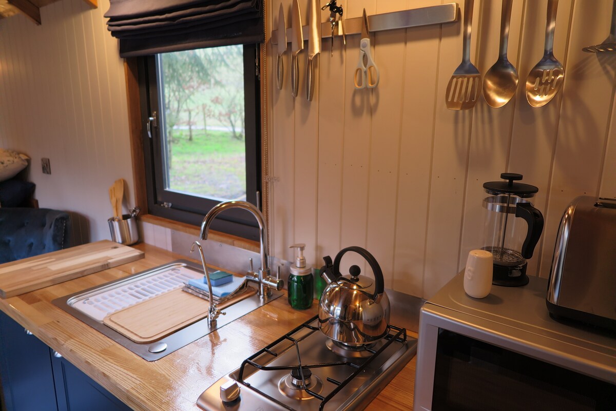 Je to to, co chcete, aby to bylo... romantické, útulné, útěk z davy, útulné, blízko přírody... Odpočineš si a uvolníš se. Můžete prozkoumat Národní park Brecon Beacons, jemně se projít nebo se vydat na výšlap, být dobrodružní nebo zůstat v klidu a dívat se na hvězdy. Schovaný v sadu s panoramatickým výhledem, ponořte se do své soukromé vany na dřevo. Užijte si jeho velšskou atmosféru! Má všechny věci, které očekáváte (koupelna, splachovací toaleta, podlahové vytápění, lednice, mikrovlnná trouba, varná deska) a další pro skvělou přestávku!