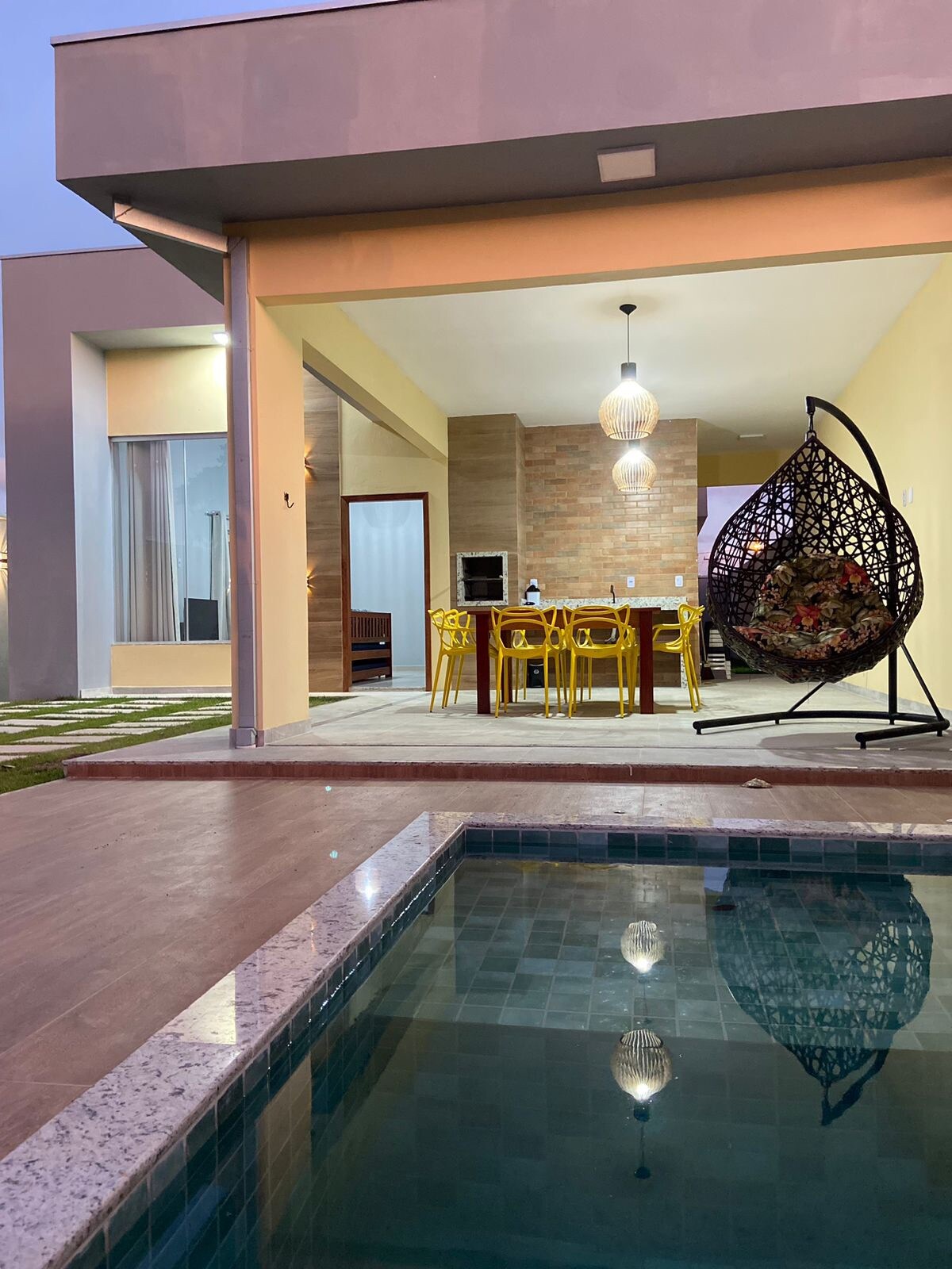 The large and comfortable house, close to the beach, to enjoy and rest with your family and friends. With 02 quarters being one with a suite, all with air conditioning, 01 social bathroom,living room and kitchen is a small service area. The pool and gourmet area with barbecue is shared. Uzavřený byt a nonstop ostraha. V areálu máme dalších 02 domů, jako je ten náš.