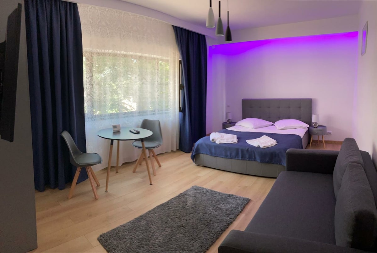 Malý, kompletně zrekonstruovaný, klidný a útulný byt jen 10 minut chůze od centra města a 5 minut chůze od nejbližšího supermarketu. Vhodné pro návštěvu Sinaie nebo okolí. Bezkontaktní příjezd a odjezd na místě bezplatné parkování na ulici.