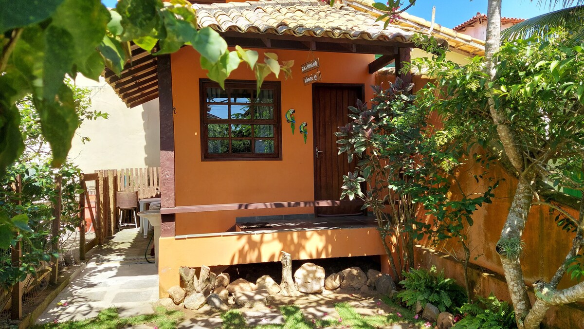 Okouzlující malý dům s klimatizací, 200 metrů od trendy pláže Geribá, na klidné a tiché ulici. K dispozici je parkovací místo v malé zahradě, balkon, obývací pokoj s rozkládací pohovkou, 24palcová televize s Netflixem, Globoplay, Amazon Prime, rychlá Wi-Fi, americká kuchyň se sporákem se 4 plotýnkami a elektrickou troubou, mikrovlnná trouba, lednice, stůl se 4 lavicemi; koupelna s toaletou. V horním patře je kolej s manželskou postelí, rozdělením vzduchu a zrcadlem. Obě prostředí mají stropní ventilátor. Gril na zahradě.