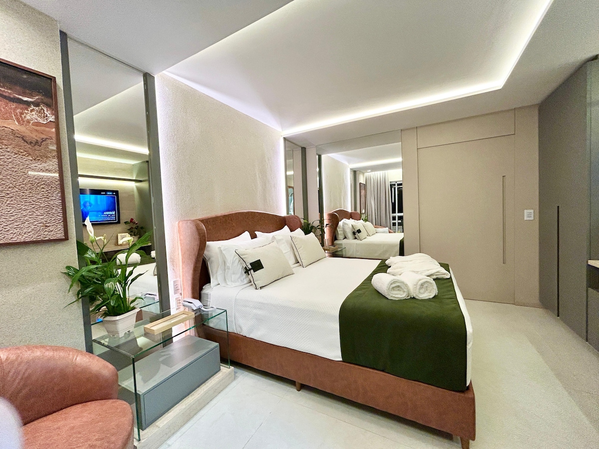 Rezortní rezidenční kondominium s různými bazény, mokrým barem, posilovnou, hernou pro dospělé a děti, hernou, lázni, kosmetickým salonem, prádelníkem. V apartmánu: rychlé a exkluzivní Wi-Fi, v ložnici (klimatizace, 42" Smart TV, velká a pohodlná postel, exkluzivní koupelna), obývací pokoj (klimatizace, 50" Smart TV, 2 pohovky (1 rozkládací pohovka), koupelna pro běžné použití), kuchyně (lednice, varná deska, trouba, mikrovlnná trouba, vodní filtr, toustovač, kávovar, mixér, nádobí, příbory atd.).