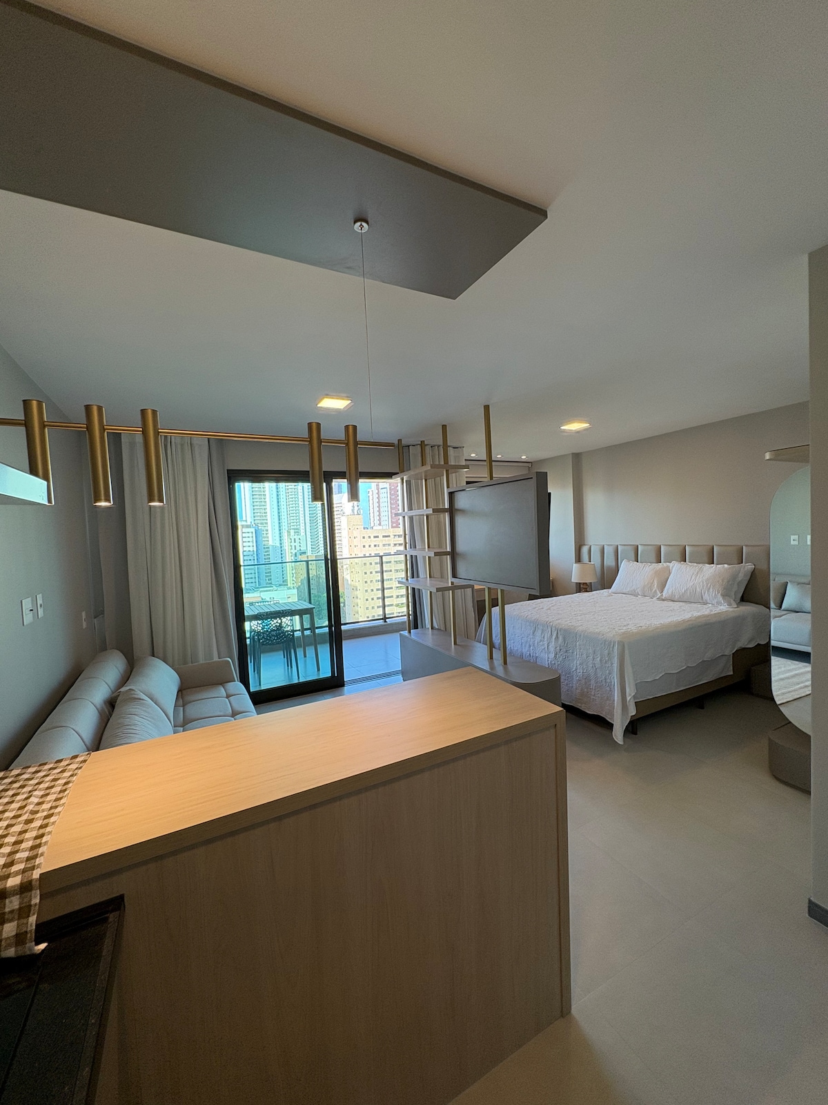Studio Marola – Sofisticação com vista para o mar em Fortaleza Viva uma experiência única no Studio Marola, localizado no 18º andar do exclusivo Beach Class Meireles. Um espaço elegante, pensado para quem valoriza conforto, praticidade e tranquilidade, com uma vista deslumbrante do mar e a apenas 500m da Praia de Iracema, em bairro nobre da cidade. Prédio com infraestrutura de alto padrão: rooftop com vista panorâmica, piscina aquecida com borda infinita e academia moderna e restaurante.