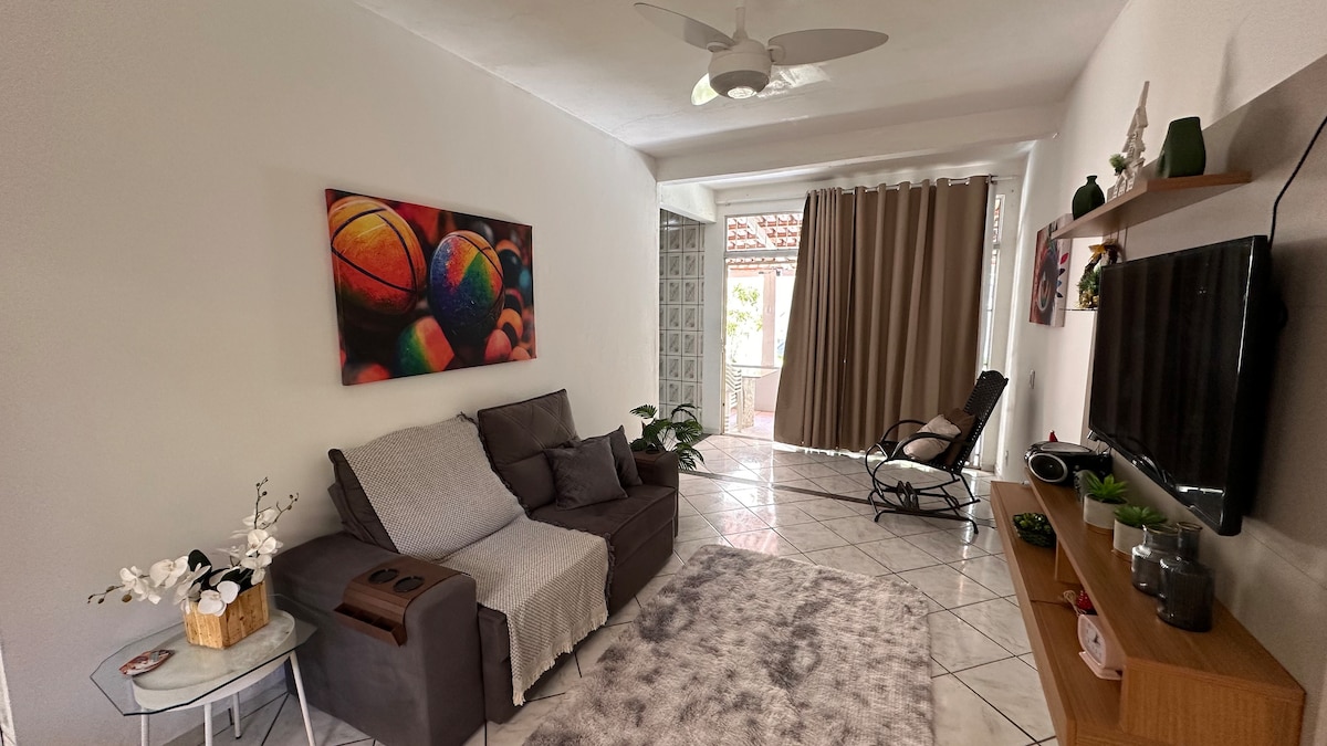 Casa térrea, tipo apartamento, com decoração rústica e praiana, para se sentir verdadeiramente em casa. Montada para seu conforto, possui ar condicionado, ventilador e SmarTV 55' Qled. Disponibilizo roupa de cama, cobertor e travesseiros. Solicito que traga toalha de banho, pois esse item não tem no imóvel.