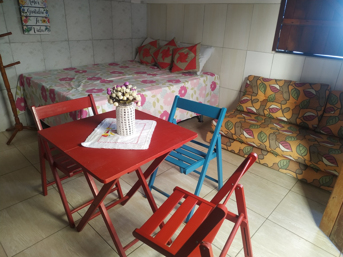 Encanto de Jauá je studio, poměrně větrané, ve druhém patře, s velkým balkonem s výhledem na Jauá Lagoon, má mezipatro pro spaní (dvojitá matrace), stejně jako dvě rozkládací pohovky a body pro dvě vnitřní a dvě venkovní houpací sítě. Nachází se 200 metrů od pláže.