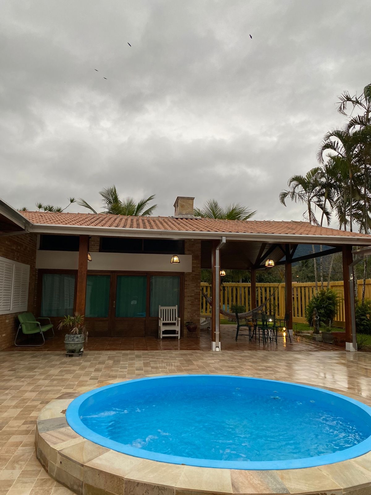 Casa com VISTA para o mar no meio de uma preservação natural. 3 suítes , cozinha equipada , churrasqueira , piscina e jacuzzi para desfrutar de dias incríveis. Não pode fumar no interior da residência e não aceitamos animais de estimação. PACOTES DE NATAL E ANO NOVO CHAMAR POR MENSAGEM Obs: não temos vaga de garagem, Mas podem deixar o veículo em frente à residência (rua sem saída) - Obs: a casa não é beira mar , ela tem vista para o mar temos caseiro e caseira no local, consulte serviços