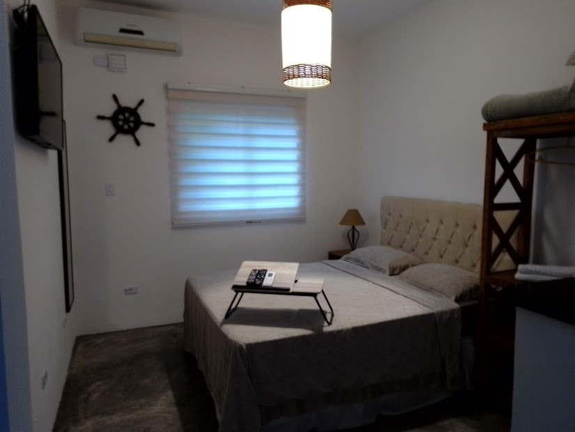 Sezónní dům se skládá z 1 ložnice/obývacího pokoje s rozkládací pohovkou a přistýlkou; 1 ložnice s manželskou postelí a skříněmi, kompletní a vybavené kuchyně, 1 koupelny pro výhradní použití, ventilátorů a balkonu se stolem a houpací sítí, stejně jako sdíleného přístupu k nádrži, šňůrám, hadici a čisticím pomůckám. Žehličku a žehlicí prkno si můžete vyžádat zdarma. K dispozici je Smart TV s volným přístupem k Netflix, Max a globoplay. Nabízí společné vnitřní parkoviště a bezplatné WiFi.