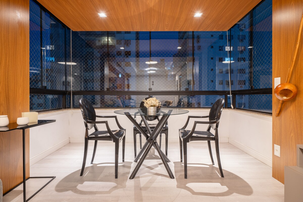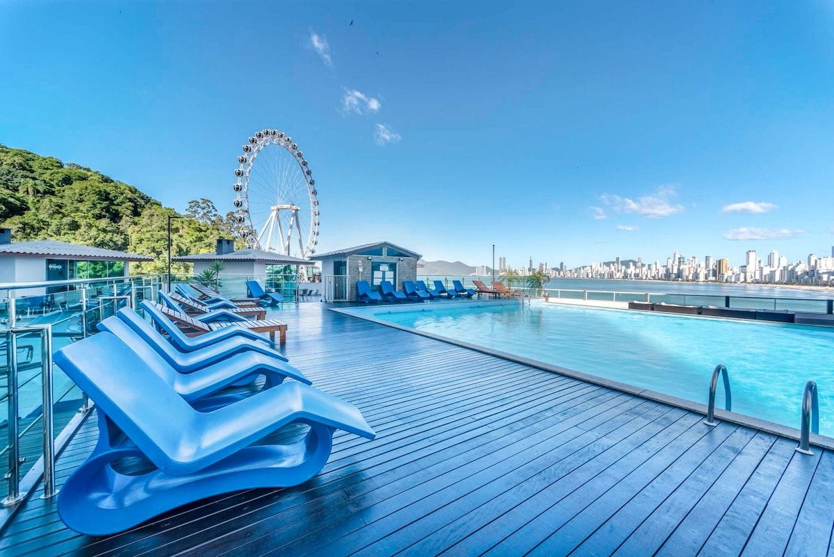 Apartmán s výhledem na moře v Balneário Camboriú. Nachází se v Pontal Norte a nabízí jeden z nejkrásnějších výhledů na město, přímo naproti Praia Central a promenádě, která vede k plážím Prainha a Praia do Buraco. Dva kilometry od něj se nachází Praia Brava a Morro do Careca (pro milovníky paraglidingu). Apartmán má ložnici s manželskou postelí a klimatizací, Wi-Fi, obývací pokoj s rozkládací pohovkou, klimatizaci, chytrou televizi, kuchyň a koupelnu. Hosté mohou využívat posilovnu, bazén a garáž.