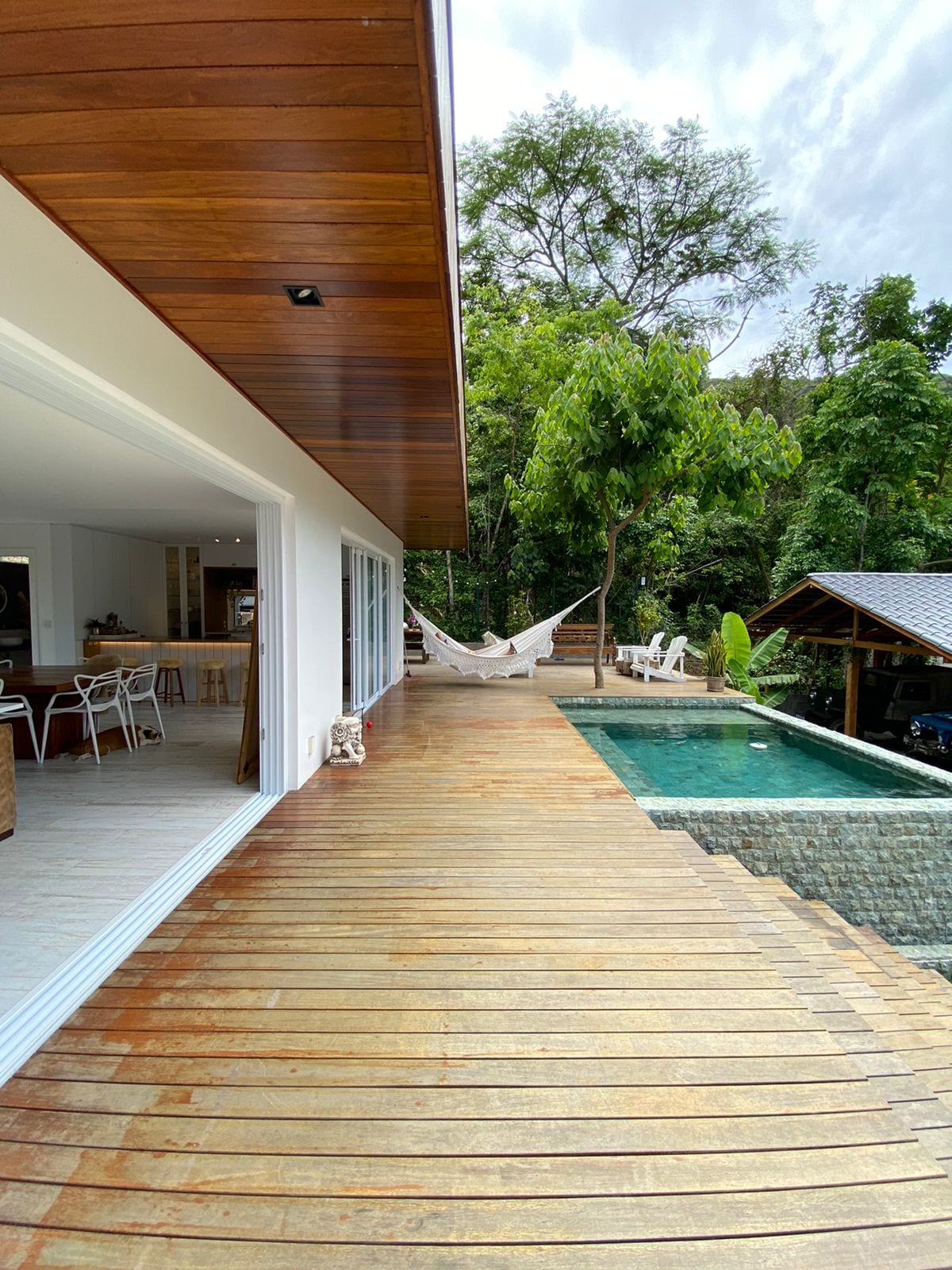 Casa de praia a 250 metros do mar, no coração da Mata Atlântica. A casa oferece total conforto com ar condicionado, TV, Wi-Fi, cozinha completa e água aquecida por energia solar. A propriedade é ampla, com piscina grande, dois quiosques com churrasqueira. A propriedade conta com um jardim muito arborizado, muro alto e portão eletrônico, garantindo privacidade e segurança. O cenário perfeito para curtir férias tranquilas e relaxantes.