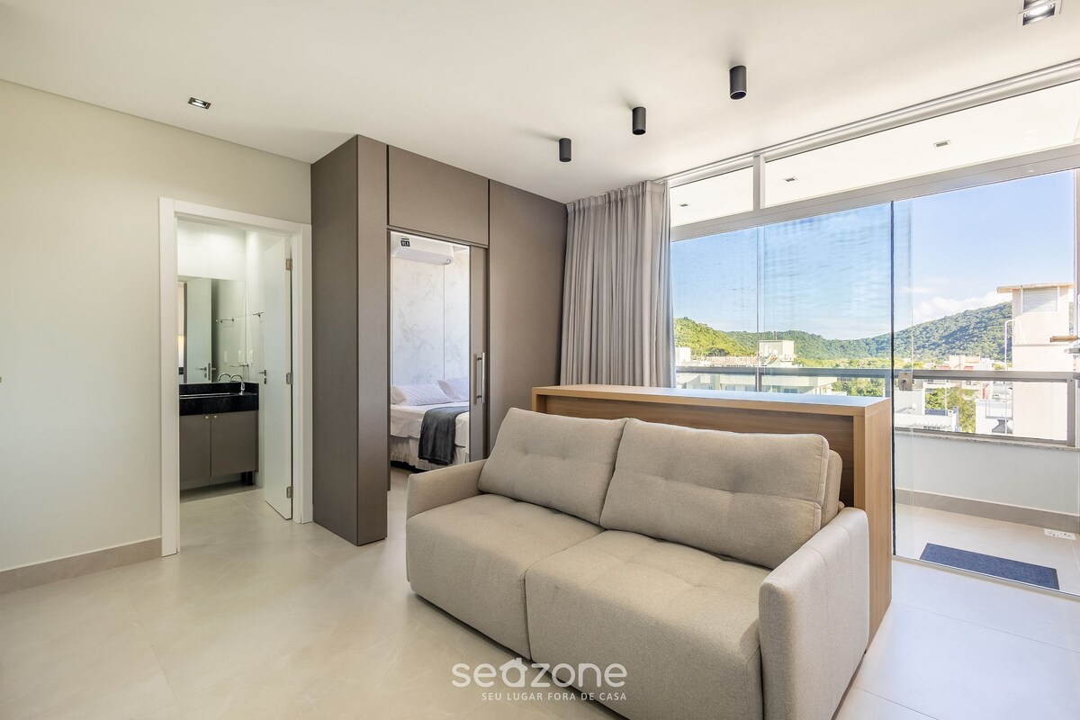 Plně vybavené studio v centru Bombinhas, navržené pro ty, kteří ocení strukturu a strategickou polohu. Jen 180 m od pláže, s úžasným výhledem na město a moře, najdeš velkou manželskou postel, rozkládací pohovku, klimatizaci, chytrou televizi a plně vybavenou kuchyň. Gurmánská zóna s grilováním ještě víc zpříjemní zážitek. Budova má 24hodinovou recepci, kryté parkoviště a střešní terasu s bazénem a výhledem na moře. Rezervuj nyní a užij si Bombinhas s větší mírou exkluzivity.