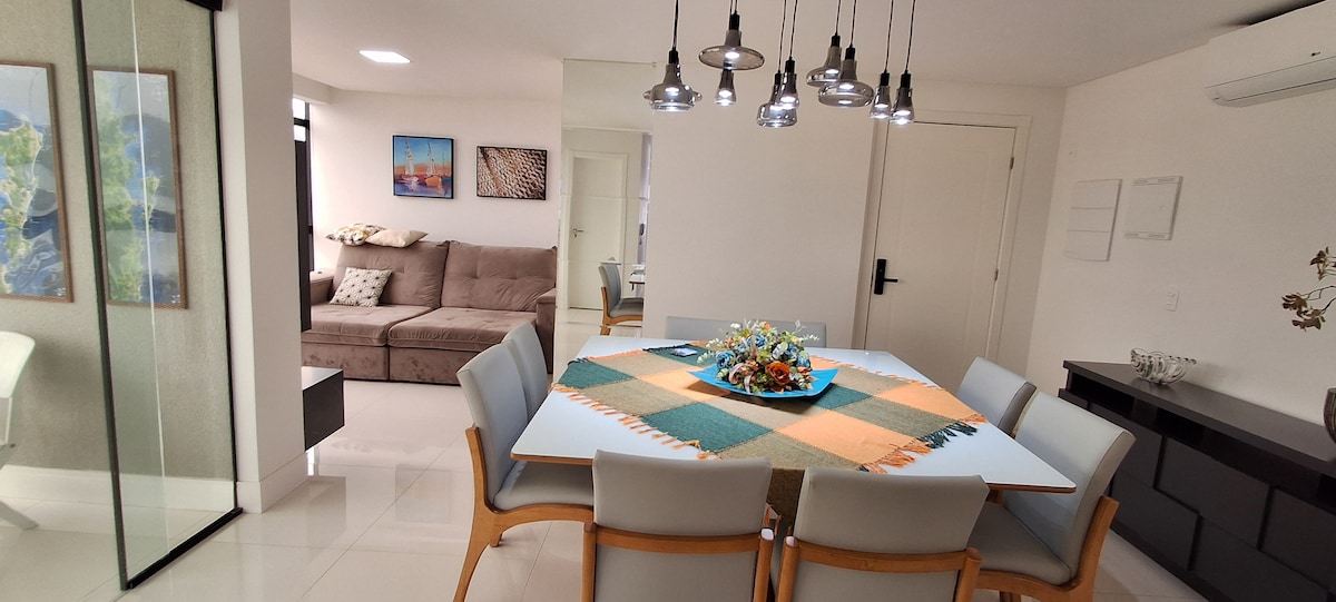 Pokud hledáte pohodlí, praktičnost a skvělou polohu, jste na správném místě! Náš nově zařízený a kompletní apartmán se nachází 1 minutu chůze od krásné pláže Praia do Perequê a 2,4 km od pláže Praia de Porto Belo. S úžasným výhledem na moře je blízko všeho, co potřebujete pro svůj pobyt: - 50 m od pláže Praia do Perequê - 150 m od trhu Girassol (včetně pekárny a řeznictví) - 650 m od velkoobchodního trhu Komprão (včetně pekárny a lékárny) - Restaurace, kavárny a snack bary do 500 m