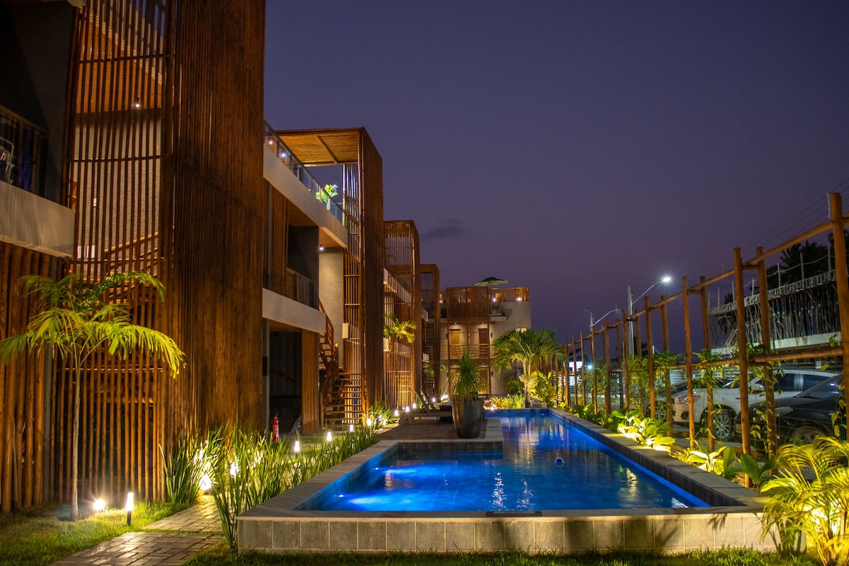 Piscina, 700m da praia + restaurante no condomínio