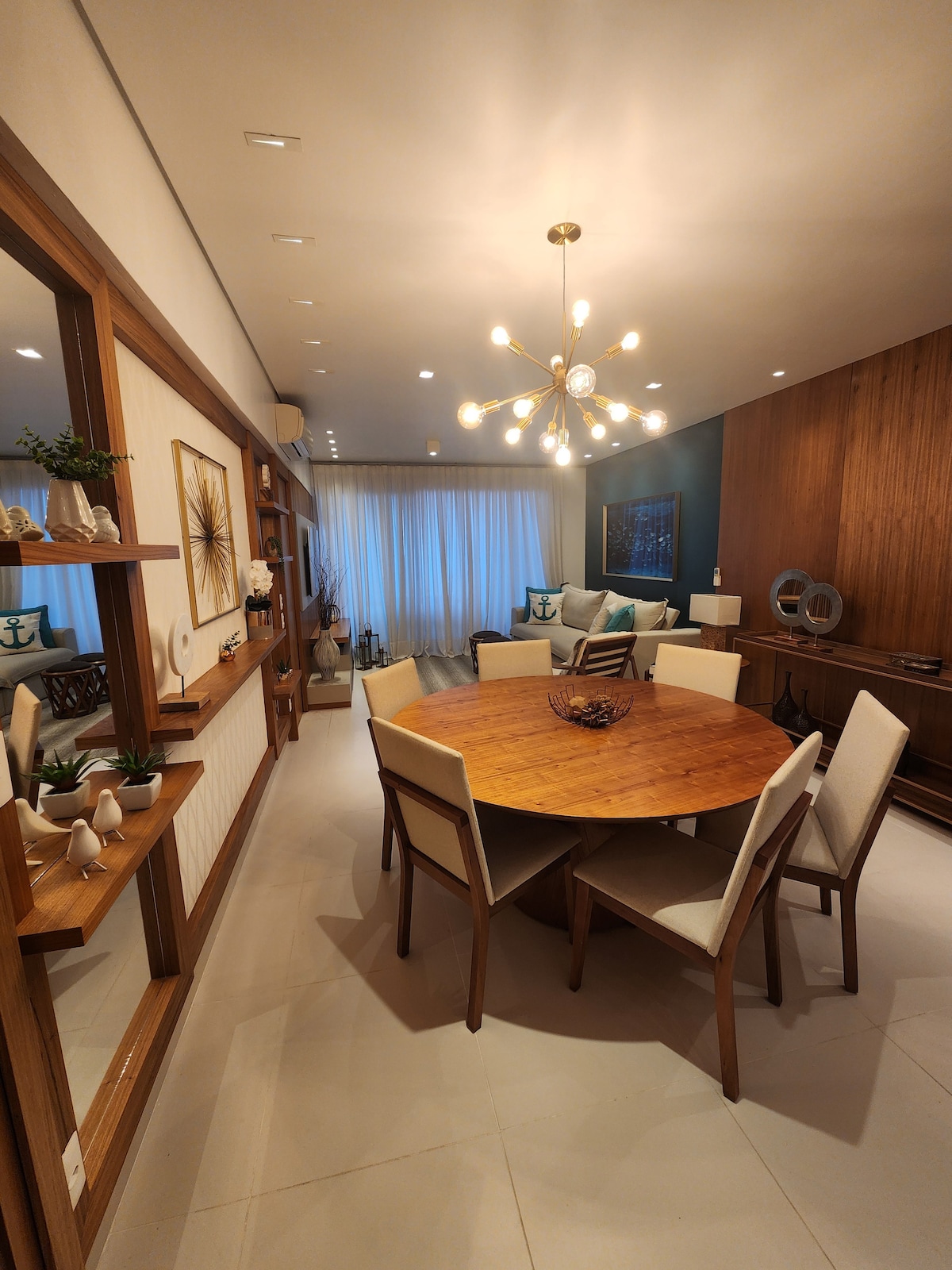 Apartmán o rozloze 263 m2 s fantastickým výhledem na celou pláž São Lourenço a Riviera. Velký uzavřený balkon se skleněnými tabulemi po celém obvodu bytu. Se 4 ložnicemi, 2 z nich jsou apartmány, všechny s vestavěnými skříněmi. Klimatizace ve všech pokojích. Televize a připojení k internetu 120 Mb. Vynikající jídelna a kuchyně s kombinovaným prostorem a stolem pro více než 10 osob. Gril a stůl na verandě. Kondominium s velkým bazénem, posilovnou a saunou. 3 parkovací místa.