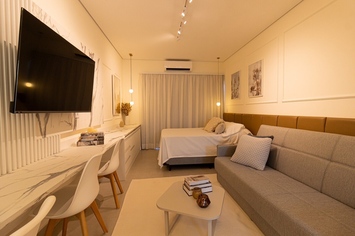 Objev Peruíbe z pohodlí centra města! Náš apartmán se nachází v centru, pouhé 3 minuty od pláže a v blízkosti všeho: pekáren, trhů, lékáren a restaurací. 🛏️ 1 pohodlná ložnice 🍽️ Vybavená kuchyně 📺 Smart TV + Wi-Fi Ložní 🧼 prádlo a ručníky jsou v ceně Ideální pro páry, malé rodiny nebo ty, kteří hledají praktičnost a privilegované místo. To vše s kouzlem a klidem jižního pobřeží! Rezervuj nyní a užij si Peruíbe, jak si zasloužíš!