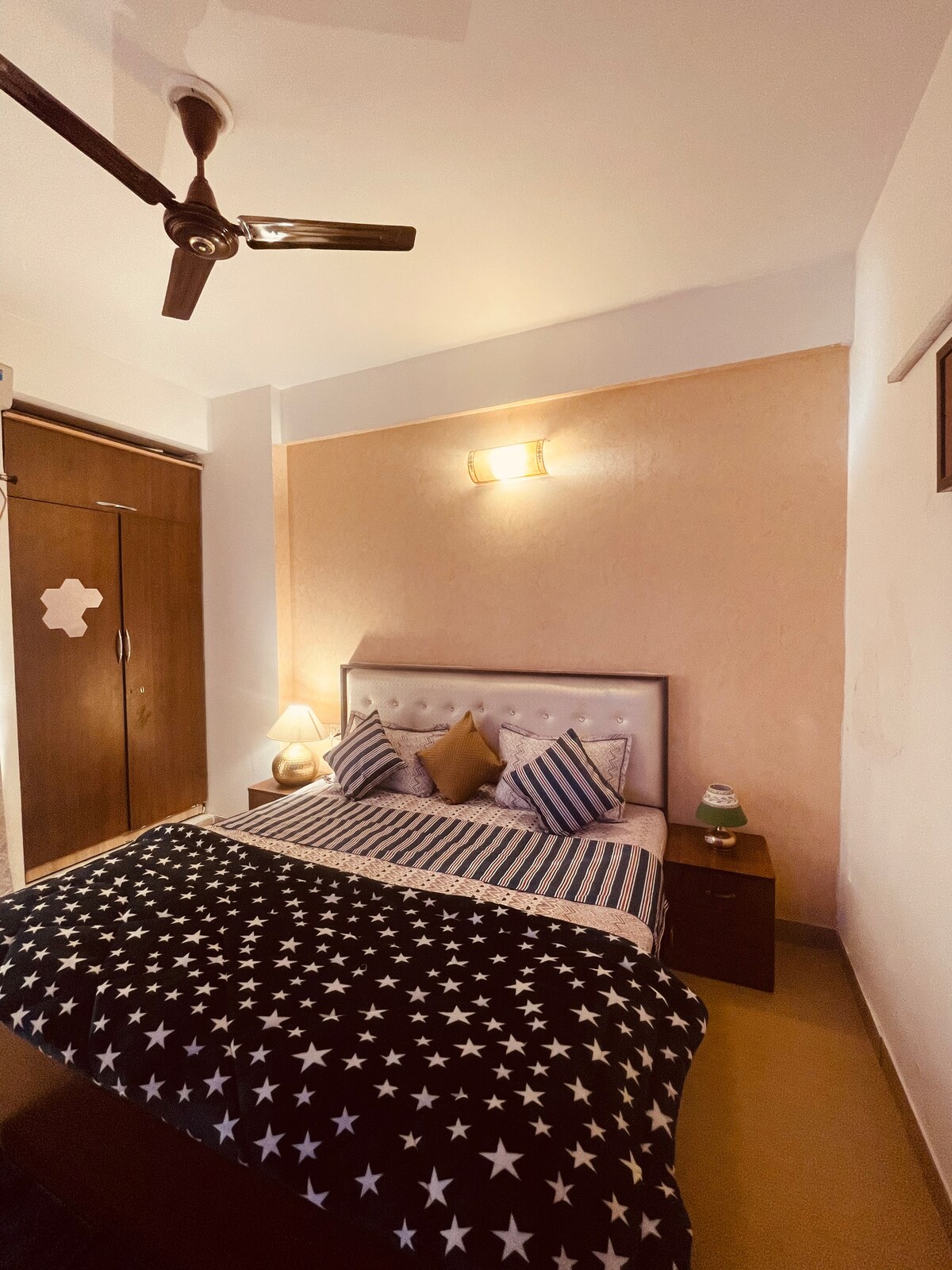 Užij si pohodlný pobyt v našem krásně navrženém apartmánu 1BHK v centru Vrindavanu. Tento byt je dokonalou kombinací pohodlí a klidu. Byt nabízí klidné útočiště a zároveň zajišťuje dobré spojení s městem. Hned vedle nemovitosti se nachází několik restaurací s různými kuchyněmi, potraviny a obchody s každodenními potřebami, takže během pobytu budeš mít vše potřebné snadno dostupné.