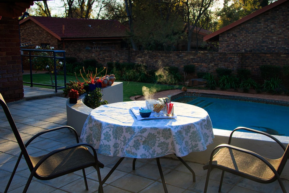 V souladu s předpisy o úklidu a hostitelství v souvislosti s Covid-19. Nově zrekonstruovaný otevřený pokoj, oddělený od hlavního domu – nabízí manželskou postel, luxusní vanu, sprchu a samostatnou toaletu. Tento pokoj má svůj vlastní vyhrazený venkovní prostor. V blízkosti: Nemocnice Kloof, Wolwespruit horská cyklistika a trailový park, nemocnice Faerie Glen, Menlyn Maine, Menlyn Mall, Sun Time Square Arena/Casino, N1, Lynnwood Bridge, The Club Centre, The Village - Hazelwood