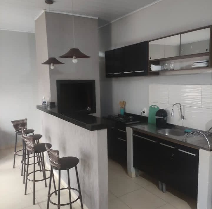 Casa Grande, área ao ar livre, garagem com até 2 espaços, TV na sala mais Netflix 1 fogão na cozinha outro na garagem na área. 1 churasqueira jegiscam mais 1 sofá cama p quinta pessoa. 1 rede com molas p relaxar....
