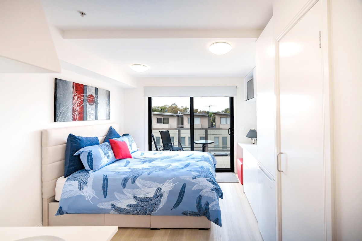 Explore the historic neighbourhoods of Fitzroy North and Carlton North from this centrally located studio apartment with garden outlook. The private balcony is great for outdoor relaxing and dining. Sample the local cafe culture or catch the 96 tram to the city or St Kilda beach. Made in Melbourne! Message us about longer stays from June 2025.