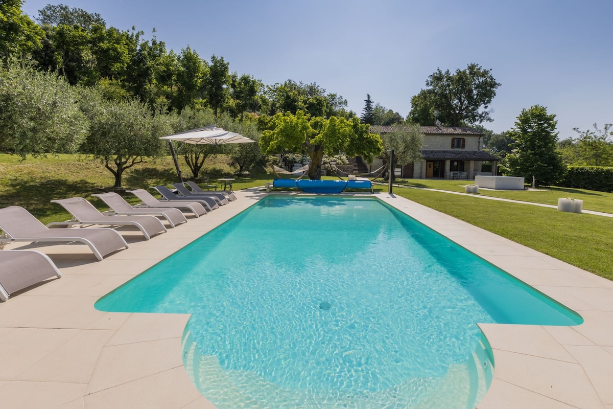 Nádherná chata se zahradou a bazénem pro exkluzivní použití hostů v klidném, zeleném prostředí, 10 minut jízdy od Conero Riviera. Odpočinout si a zchladit se můžeš v malém venkovním bazénu (5 metrů dlouhém, 3 metry širokém a 1,20 metru hlubokém), který je otevřen od začátku května do začátku října. Zahrada se slunečníkem, lehátky a grilem. 3 ložnice, 2 koupelny, podkroví s posilovnou a hracím/koutečkem na čtení. Terasa o ploše 16 m² s houpací sítí a výhledem na pohoří Sibillini. Soukromé parkování