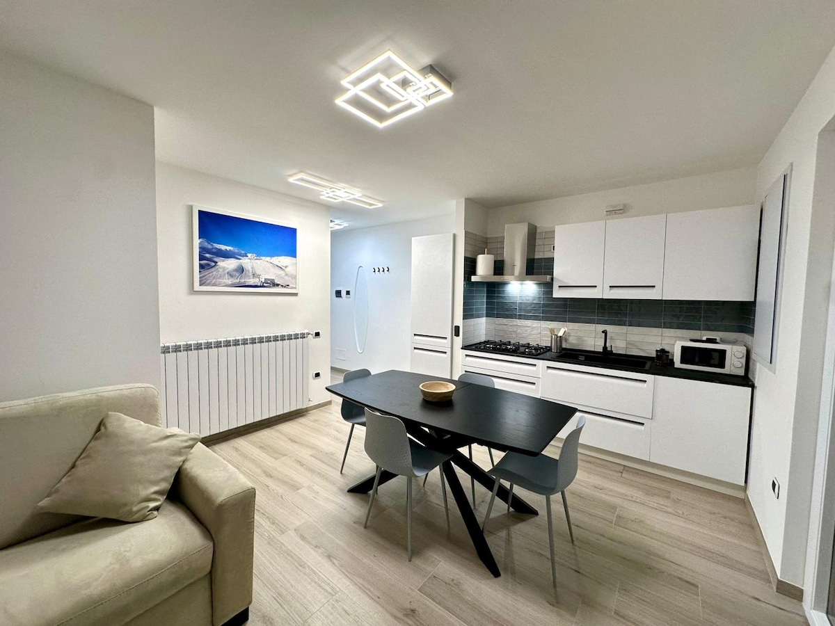 Antaura is a modern and elegant apartment in Roccaraso, ideal for families and couples. Set in a quiet area just 5 minutes from the Monte Pratello ski slopes, it offers comfort in every season. The apartment features an open-plan living area with fireplace, a fully equipped kitchen, two bedrooms, a bathroom with washing machine, and a large panoramic terrace with mountain views. High-speed Wi-Fi, self check-in, and private parking included.