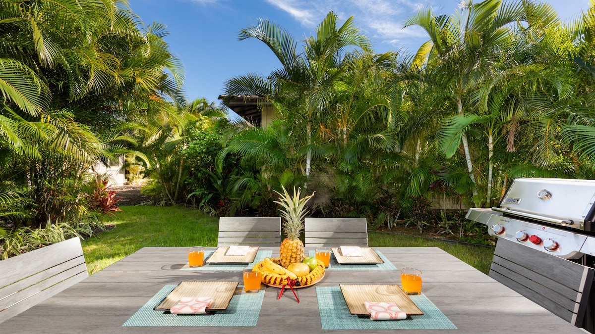 Tento klidný plážový dům v Puako nabízí 3 ložnice a 2,5 koupelny – ideální pro rodiny, páry nebo přátele. Ubytování se nachází naproti klidné pláži, kde si můžeš vychutnat procházky při západu slunce a pozorování želv. Pár minut od nejlepších bílých písečných pláží, luxusních letovisek a golfu. Nyní s novými dělenými klimatizačními jednotkami pro pohodlné chlazení celého domova. Odpočiň si na tropické zahradě, povečeř venku a užij si všechnu krásu, kterou Velký ostrov nabízí.