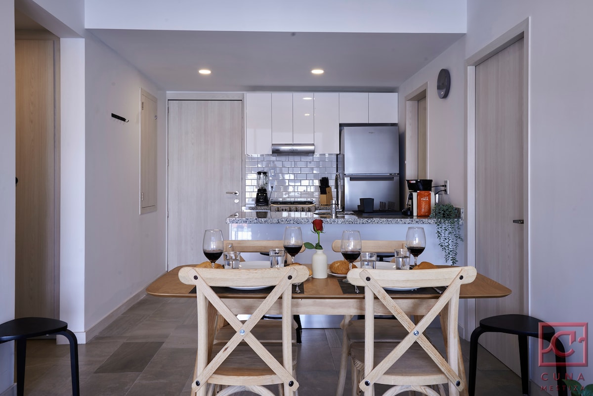 Toto jedinečné místo má svůj vlastní styl. Apartmán v nejexkluzivnějším a nejmodernějším místě v Pueble, s panoramatickým výhledem na moderní Puebla, v útulném soukromém prostoru, jen pár kroků od nákupního centra, barokního muzea, parků a dalších. Užijte si svůj pobyt ve všech dynamických hygienických prostorách, abyste si užili příjemné chvíle, stejně jako vše potřebné, abyste si mohli užít a odpočinout si při krátkých nebo dlouhých pobytech. Využijte naše exkluzivní vybavení navržené s ohledem na vaše potřeby.