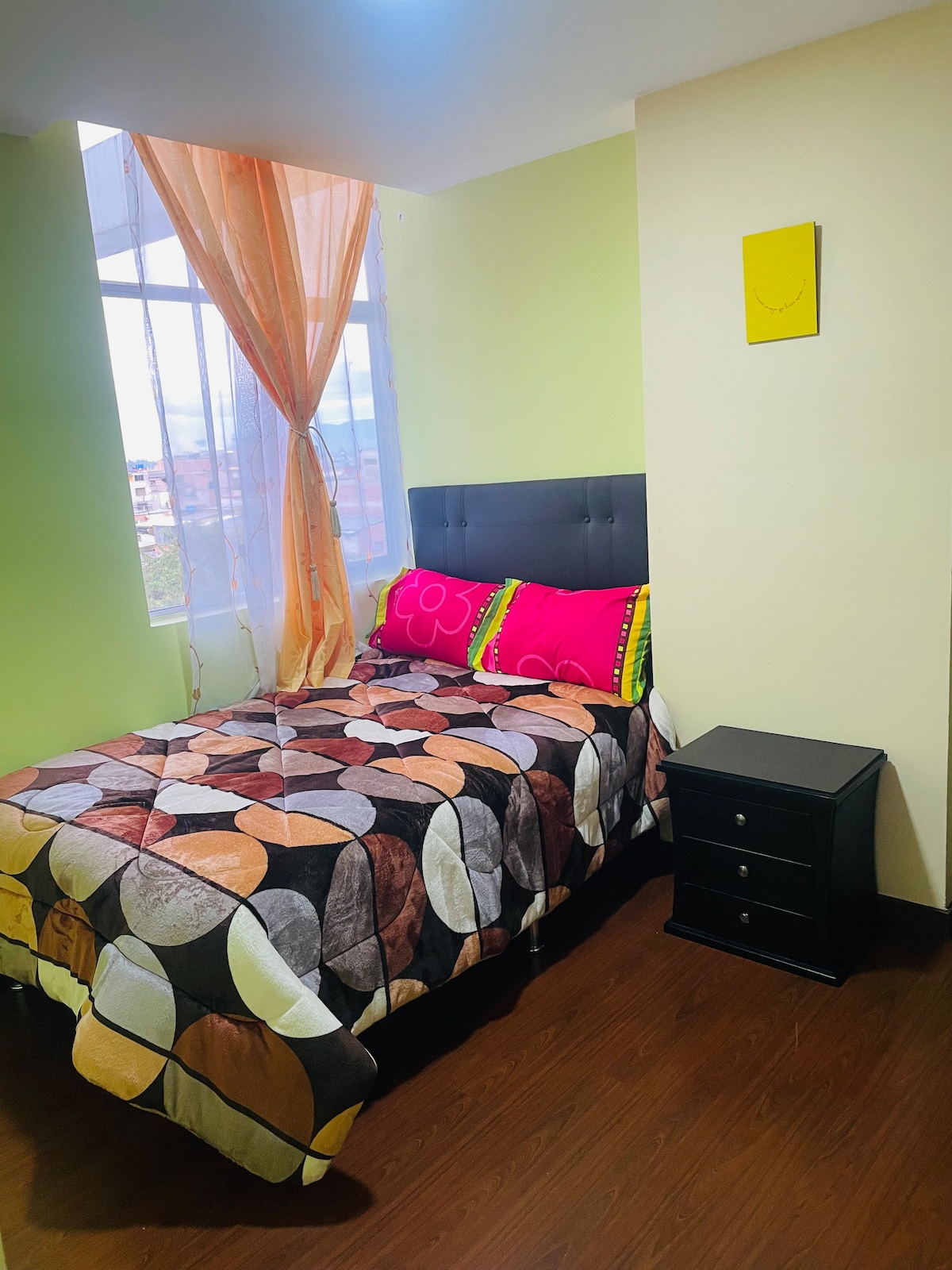 Hermoso apartamento, nuevo, bien equipado, pensado en tu comodidad con 2 televisores, 1 barra de sonido lg, 2 camas y 1 sofacama, tocador, terraza con asador, lugar muy tranquilo central, cerca de zonas turísticas y comerciales, no se preocupe x largos traslados, facil acceso a transporte público. Haz de tu estadía la mejor experiencia. Reserva y aprovecha x un super precio para 4 personas. A solo 2 minutos a pie de mister pollo ipiales.