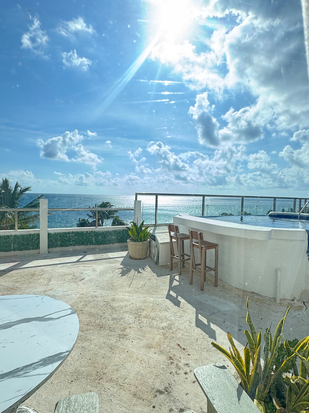 Vítejte ve Villa Coral Blanco, nádherném apartmánu na pláži v exkluzivní čtvrti Distrito Puerto v Puerto Morelos. This luxury 2-bedroom, 2-bath Oceanfront 7th-floor condo offers uninterrupted Caribbean Sea views from every room high-end furniture, and luxury-style amenities. Ať už se probouzíš do východu slunce ze svého soukromého balkonu, procházíš se po odlehlé pláži s bílým pískem nebo si vychutnáváš koktejly na střešní terase u bazénu, Villa Coral Blanco je tvým soukromým kouskem ráje