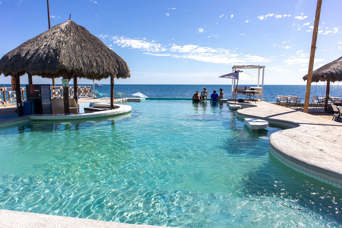 Jsme malebná nemovitost se 7 pokoji, která se nachází 20 kroků od písečných pláží u moře v Cortez. Naše odlehlá plážová poloha je ideální pro romantické dovolené, líbánky nebo jen klidný výlet.