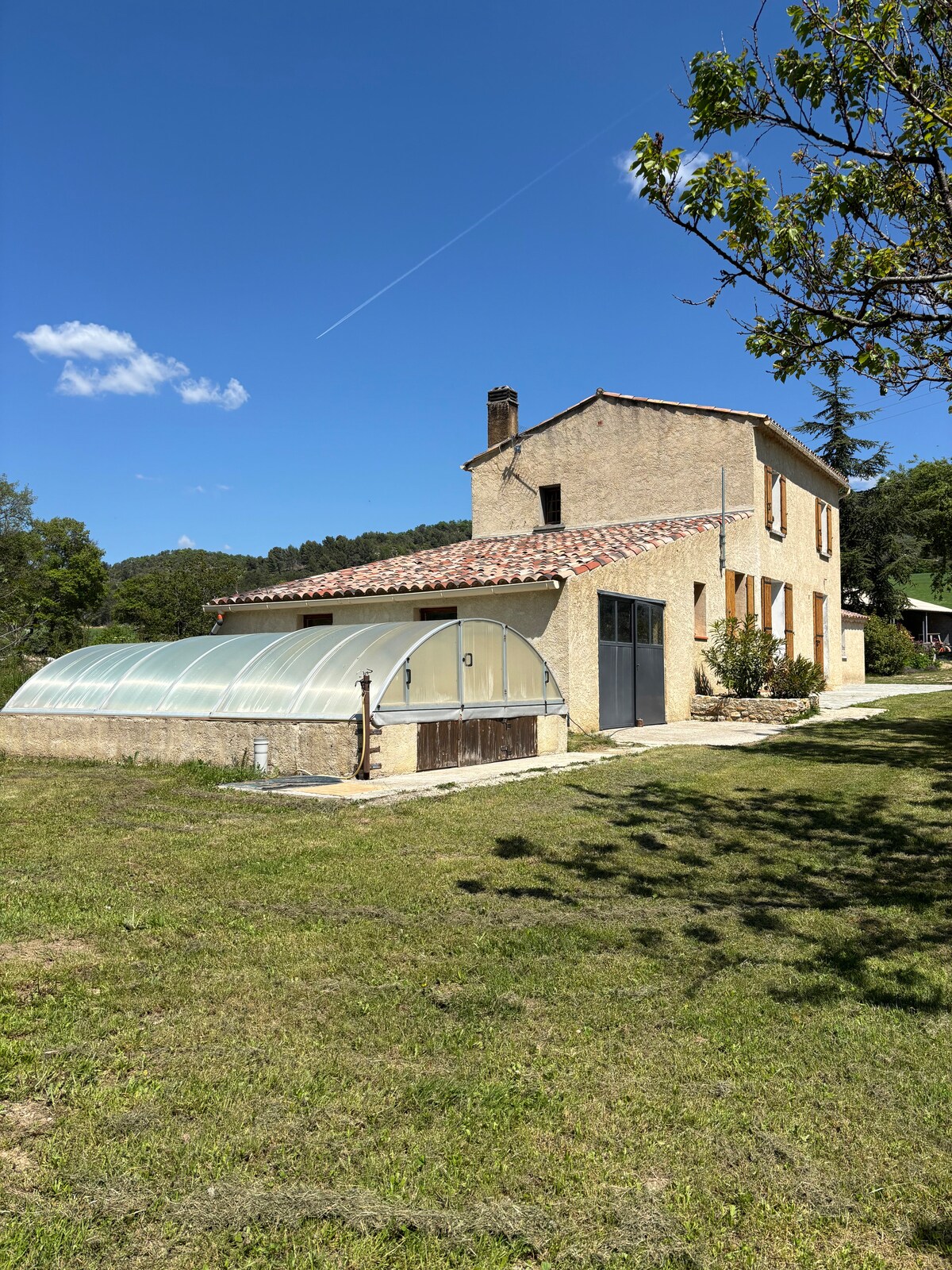 In a bucolic scenery of fields, olive trees and lavender, this former 19th-century Oil mill was transformed into a farm and then a country residence. It's in this old building with its authentic charm that we offer you a pretty Provencal-style apartment. You'll enjoy the serenity of the place, and the opportunity to stroll and wander. A small river flows nearby, and a bath in the pool will refresh you during the hottest hours of the Provencal summer... Carpe diem