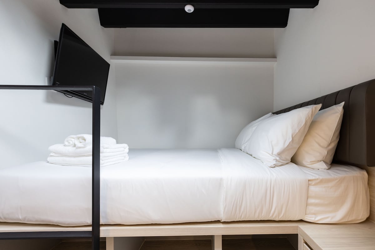 Our Studio Single (No Window) Apartment is for solo travelers who prefer to spend their time out and about and only need accommodation to come home to after a day out in the city. Plně zařízené se základním vybavením potřebným pro tvůj bezproblémový pobyt. Jídlo a potraviny jsou také jen co by kamenem dohodil! Velikost pokoje: 100 čtverečních stop