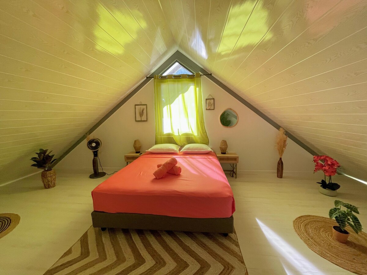 Vítej v tomto luxusním Airbnb na pláži! Výjimečná lokalita se stinnou terasou a nádherným výhledem na pláž Matavai Beach-Arue. Je to ideální prostředí pro relaxační pobyt za jemného zvuku vln. You can also enjoy the activities at the LeTahiti By Pearl Resorts 4* hotel (access to the pool for two included, hotel sauna and gym, happy hour, restaurant, Polynesian show...). Only 0ne bed, King size bed 200x200, hotel-quality, and large screen TV.